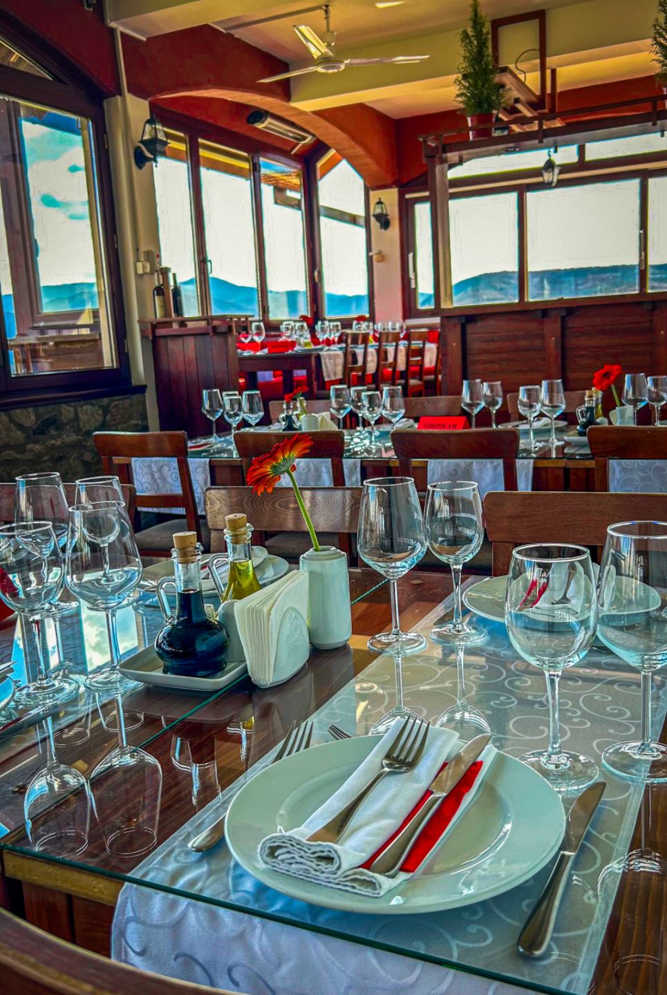 (во менито е вклучен еден пијалок за добредојде, салата, ладно предјадење, главно јадење,десерт)